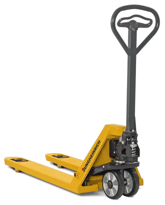 Las transpaletas manuales robustas y fiables AM 20 son ideales para el transporte diario de mercancías en trayectos cortos. Se pueden manipular de forma especialmente sencilla gracias a su elemento de mando ergonómico, que se puede manejar con una sola mano en ambos lados.