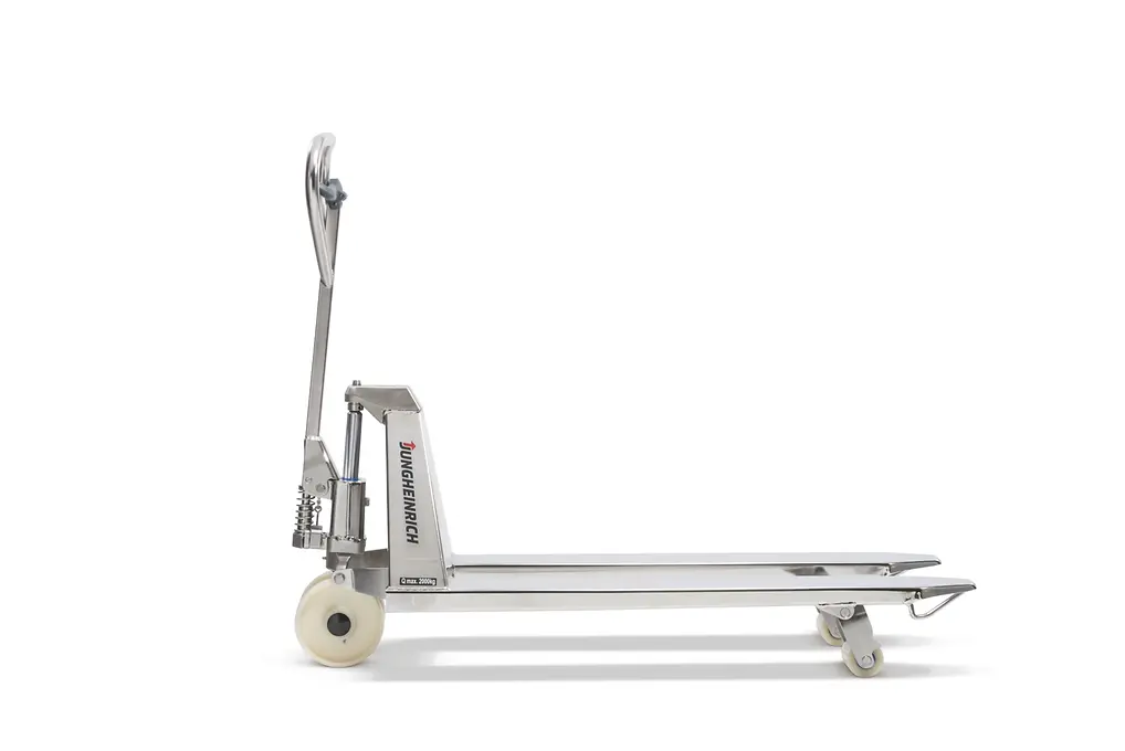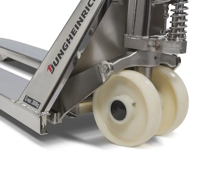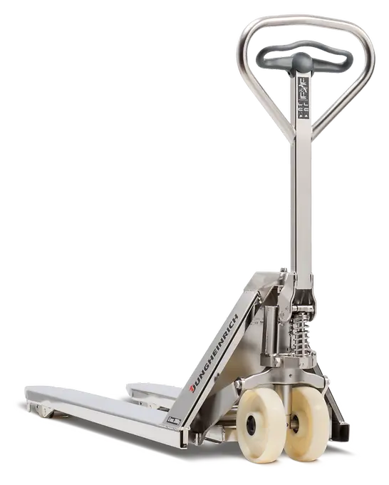 Nuestras transpaletas manuales resistentes y fácilmente manejables en versión inoxidable son ideales para todas las aplicaciones con requisitos higiénicos especialmente rigurosos o un alto riesgo de corrosión.