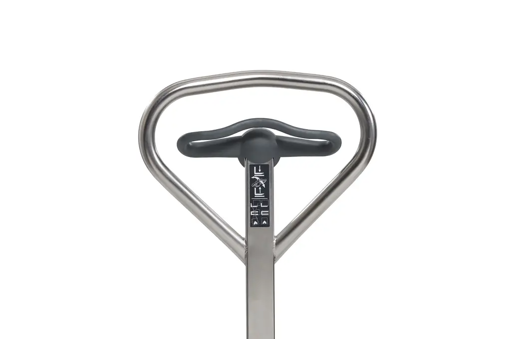 El acero inoxidable incorporado es extremadamente resistente a los ácidos y a la corrosión, de manera que las máquinas de la serie AM I son especialmente idóneas para el uso en la industria alimentaria, farmacéutica y química. Se prestó atención hasta en el más mínimo detalle para que la limpieza pudiera efectuarse rápida y eficientemente y la transpaleta no presentara huecos difícilmente accesibles. Además, se utilizan exclusivamente lubricantes aptos para alimentos. Naturalmente, esta versión también ofrece las ventajas habituales de nuestra serie AM. El diseño compacto hace que esta transpaleta manual de acero inoxidable sea extremadamente ágil y maniobrable, mientras que dispone de pequeños extras, como los estribos deslizantes, que facilitan la recogida de los palets. Para el transporte rápido y efectivo de bienes en entornos especialmente exigentes.
