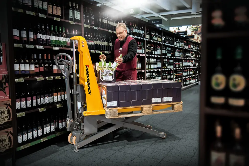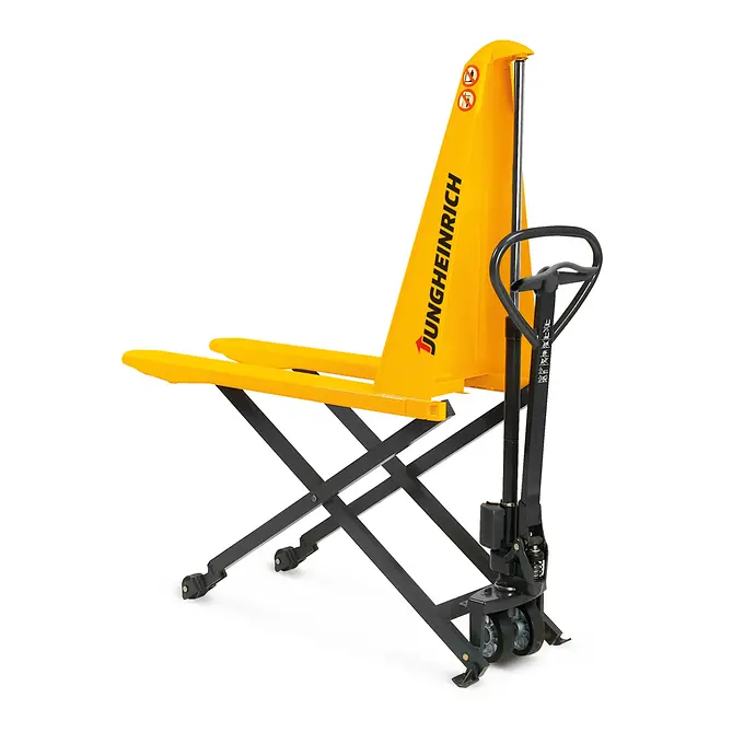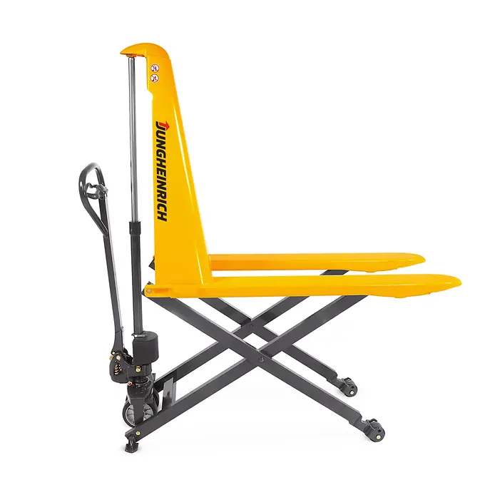 Las transpaletas manuales de tijera AMX 10 y AMX 10e son especialmente flexibles y ergonómicas y se pueden utilizar además de forma variable. Se pueden utilizar como transpaleta, mesa elevadora, mesa auxiliar o también como banco de trabajo.