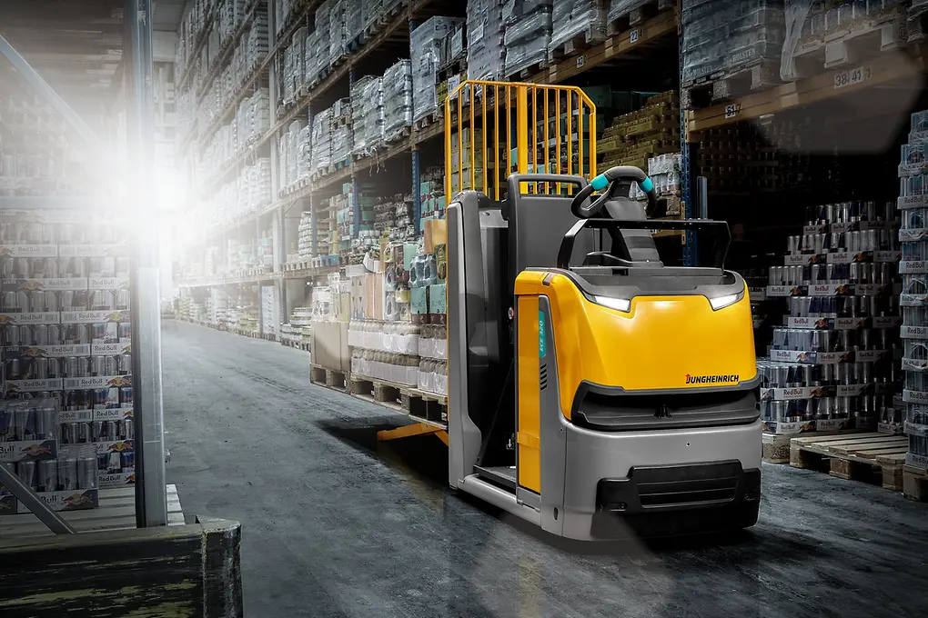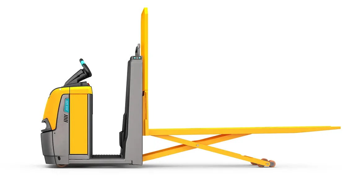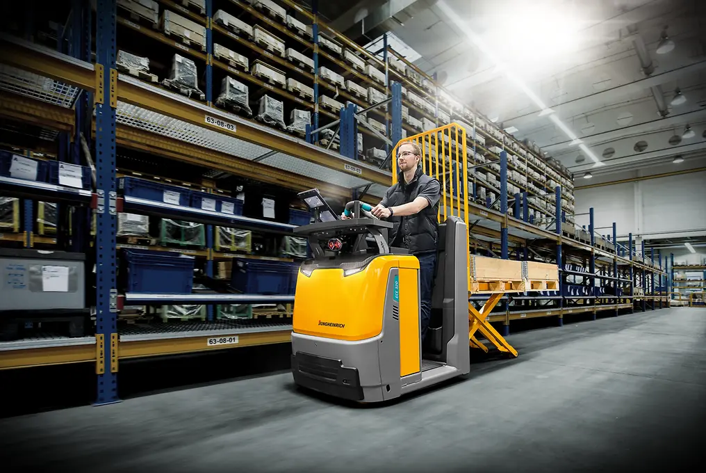 Nuestro potente y dinámico recogepedidos horizontal ECE 320 es, gracias a su sección de carga elevable con elevación de tijera para dos palets, el ayudante perfecto para una preparación de pedidos segura y eficiente.
