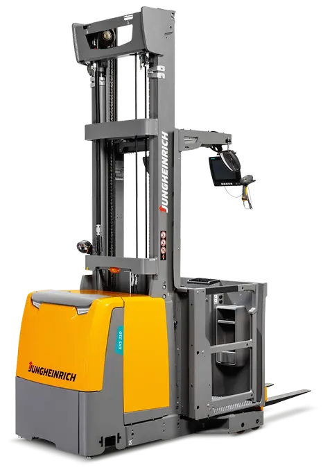 Esta eficiente preparadora vertical EKS 210 está optimizada para su uso en almacén, gracias a su extraordinario rendimiento de marcha y de elevación.