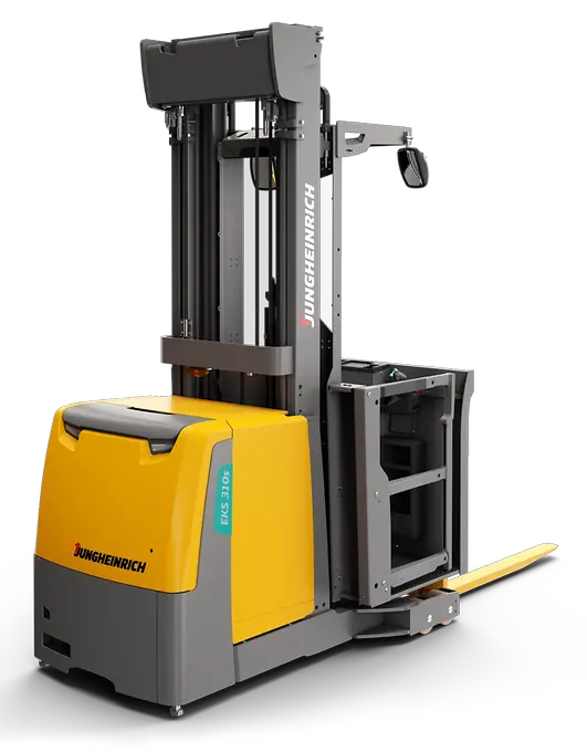La EKS es perfectamente adecuada para aplicaciones en almacén de pasillos estrechos y permite, además, obtener un rendimiento de picking notablemente mayor. Con un amplio surtido de mástiles de elevación, la recogepedidos vertical alcanza alturas de más de 8,5 metros. Tanto la velocidad como la capacidad de carga se pueden incrementar con paquetes de rendimiento según las necesidades. La navegación warehouseNAVIGATION facilita la integración de la EKS en el sistema de gestión de almacenes y la tecnología RFID permite procesos notablemente más rápidos.Un elemento clave de la nueva generación es el motor síncrono de reluctancia, que maximiza la eficiencia y minimiza las pérdidas de energía. Tanto con la potente tecnología de iones de litio como con baterías de plomo-ácido y garantía de 2Shifts1Charge: con nuestra EKS se obtiene el máximo rendimiento de picking con un aprovechamiento del espacio y una eficiencia energética óptima.
