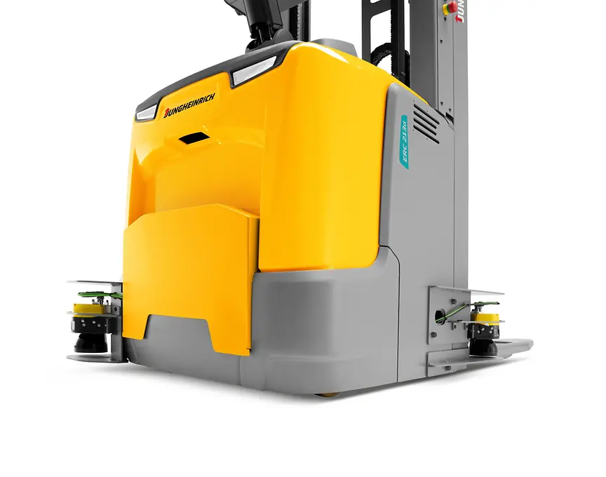 Nuestras fiables y versátiles ERCa, asumen tareas de transporte recurrentes como vehículos de guiado automático (AGV). Gracias a su estructura compacta, la ERCa es la opción perfecta para incrementar la eficiencia de sus procesos de transporte en los espacios más estrechos.