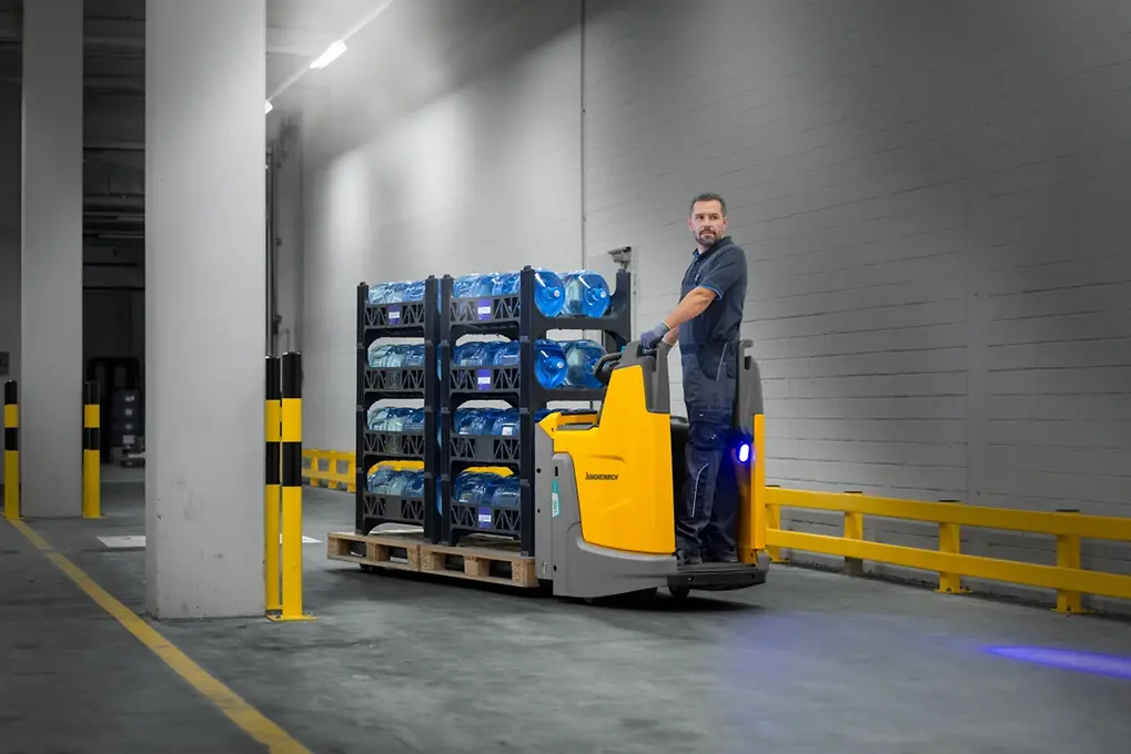 Las transpaletas eléctricas de barra timón con conductor autoportado ERE 1i, potentes y flexibles, combinan tecnología probada con características innovadoras adaptadas específicamente a los requisitos de la logística de almacén moderna.