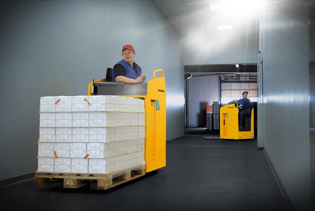 Las transpaletas eléctricas robustas y confortables ESE de las series 2 y 3 son perfectamente adecuadas para el transporte de mercancías pesadas en trayectos medios y largos, así como en la carga y descarga de camiones.