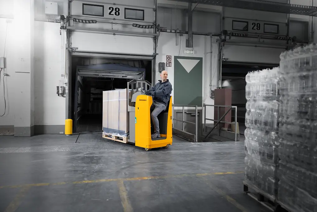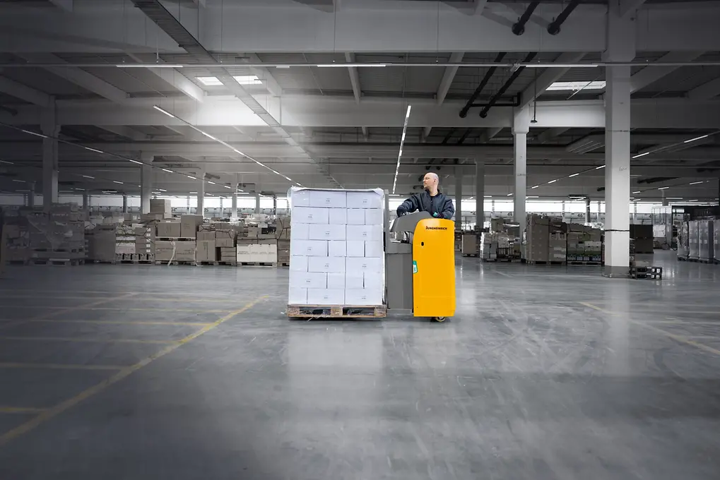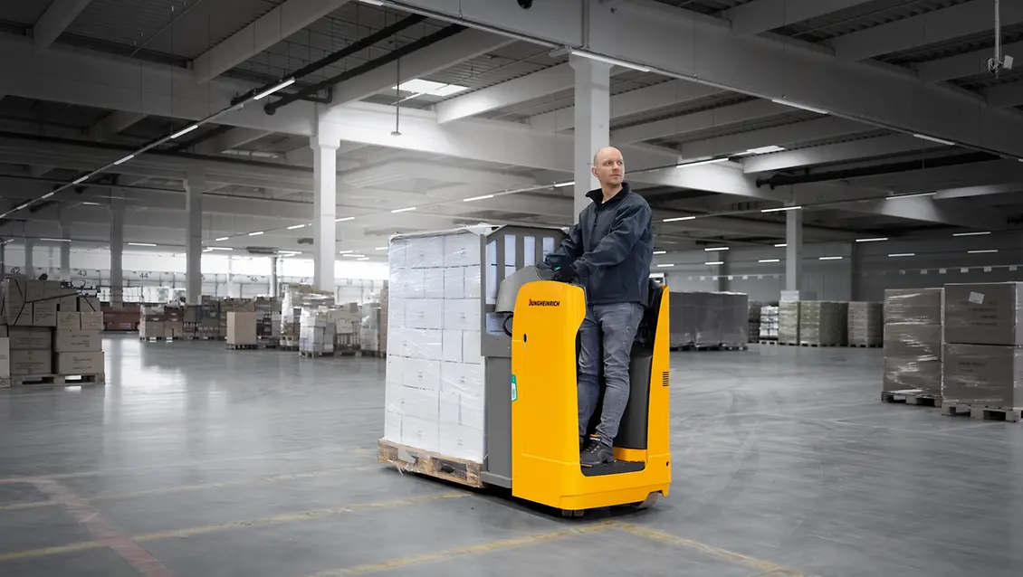 La robusta y confortable transpaleta eléctrica ESE resulta perfecta para el transporte de mercancías pesadas en trayectos medios y largos, así como en la carga y descarga de camiones. La posición transversal del conductor con respecto al sentido de marcha ofrece una excelente vista panorámica, a la vez que permite un trabajo relajado.