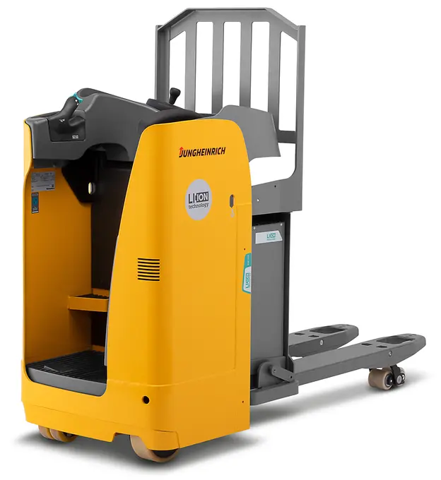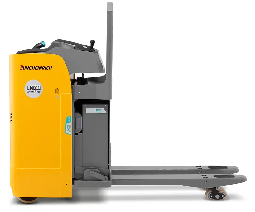 Esto supone una gran ventaja, sobre todo cuando es necesario cambiar con frecuencia el sentido de la marcha. También la dirección eléctrica facilita en gran medida esta tarea. El puesto de trabajo ergonómico optimizado con suspensión amortiguada hace que el trabajo del usuario sea menos fatigoso. La plataforma del conductor abatible de la ESE 120 se puede equipar de forma opcional con una suspensión a fin de proteger al usuario contra posibles golpes. El potente motor garantiza tanto una alta velocidad como una rápida aceleración. Gracias a nuestra tecnología de iones de litio opcional, esta potente y confortable carretilla estará siempre a su disposición, incluso para los servicios de varios turnos. Y esto es posible gracias a los breves tiempos de carga y a las rápidas cargas intermedias.
