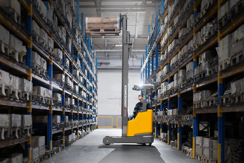 Nuestras ágiles e innovadoras carretillas de mástil retráctil ETV 214i / 216i son los ayudantes ideales para el almacenamiento y desalmacenamiento eficiente en alturas de hasta 10,7 m o la provisión de palets para la preparación de pedidos.
