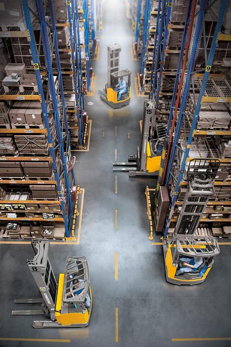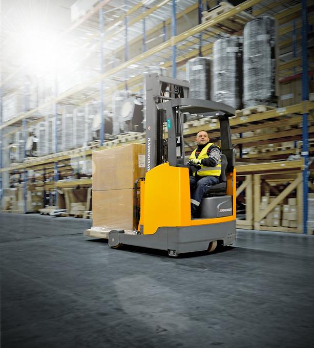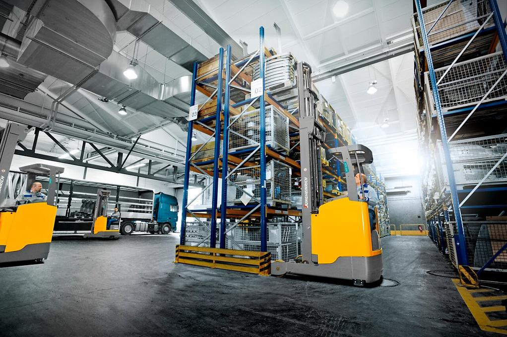 El enorme ahorro de espacio gracias a los anchos reducidos de pasillo de trabajo permite un comportamiento de marcha flexible perfeccionado por un puesto de trabajo ergonómico y una manipulación cómoda e intuitiva mediante la pantalla del conductor. Benefíciese de un mayor rendimiento en el despacho de mercancías y la reducción simultánea del consumo de energía. La tecnología de control y de tracción de última generación y las variantes de batería individualmente seleccionables convierten a nuestra carretilla retráctil en el socio más rentable para cualquier aplicación.