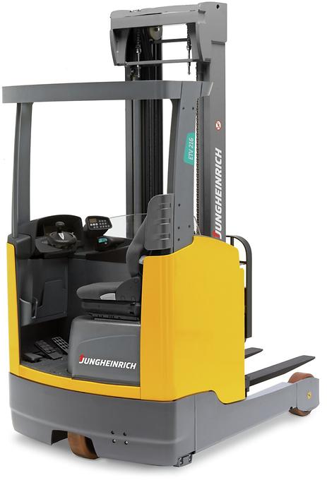 Nuestras carretillas retráctiles flexibles y de alto rendimiento de la serie 2 aceleran el trabajo en su almacén: con sus velocidades de marcha de hasta 14 km/h, las ETV desempeñan un buen papel tanto al trabajar en estanterías por gravedad, de palets o drive-in como en aplicaciones en el servicio a uno o a varios turnos. La versión ETM de la serie 2 es, gracias a su construcción estrecha, la mejor opción para almacenes de estanterías drive-in o el almacenamiento en bloque.